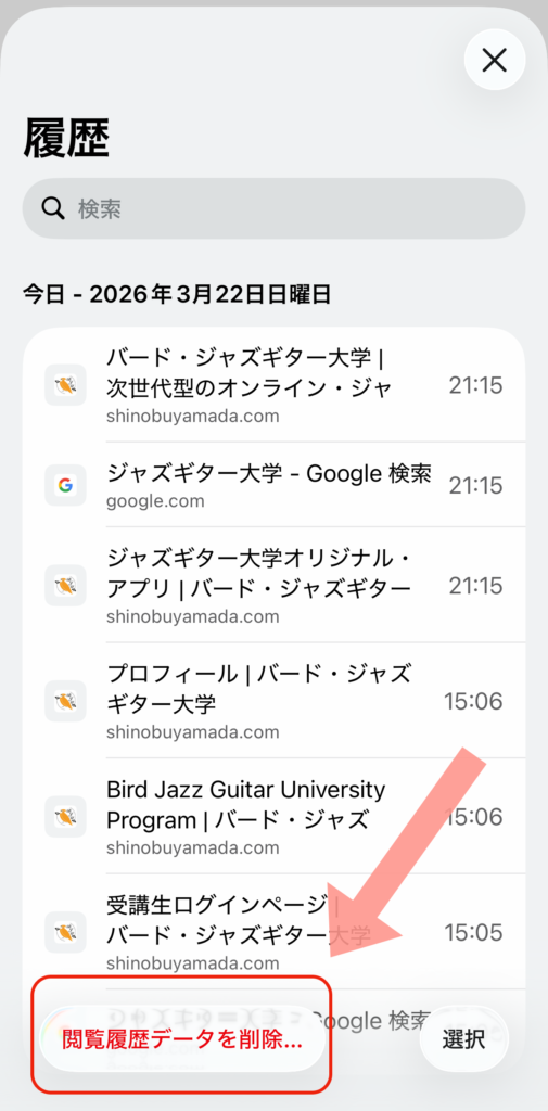 閲覧履歴データを削除