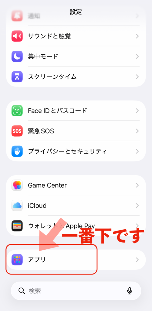 一番下にある「アプリ」をタップ