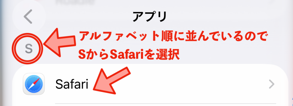 「S」欄から「Safari」を選択