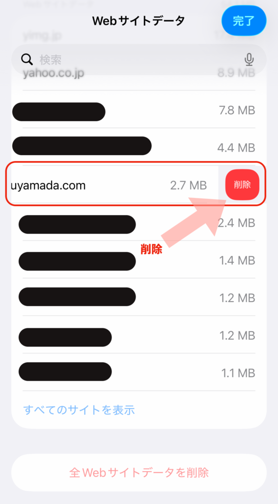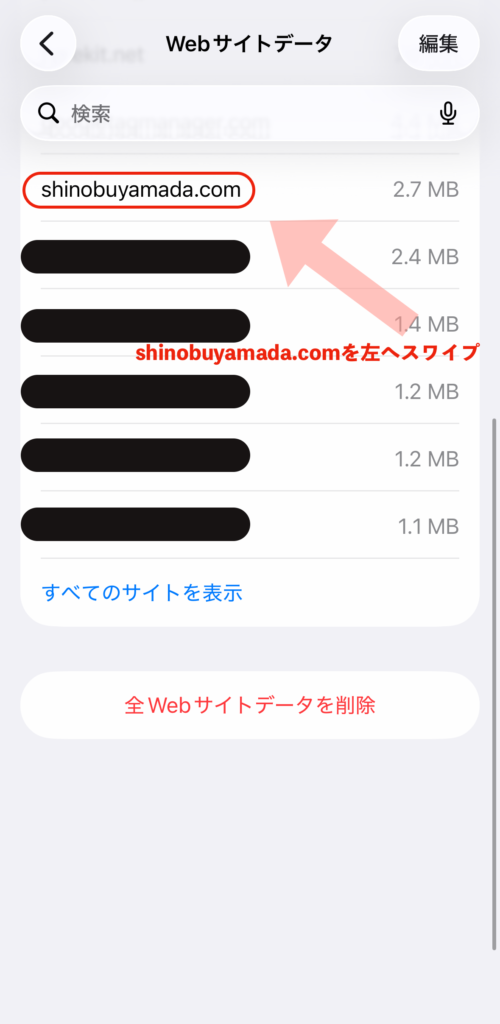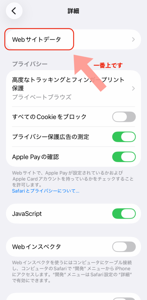 一番上にある「Webサイトデータ」をタップ