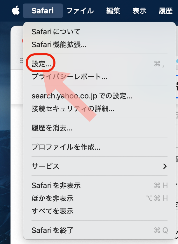 メニューバーから「設定」をクリック