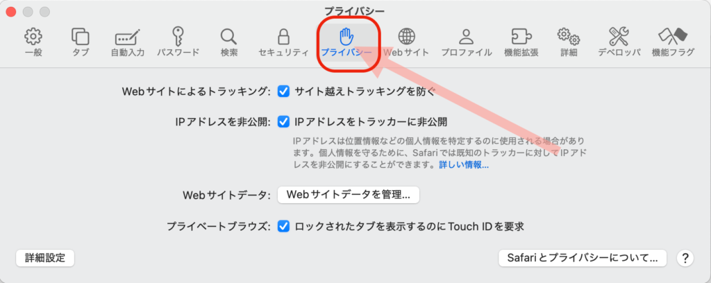 「プライバシー」をクリック