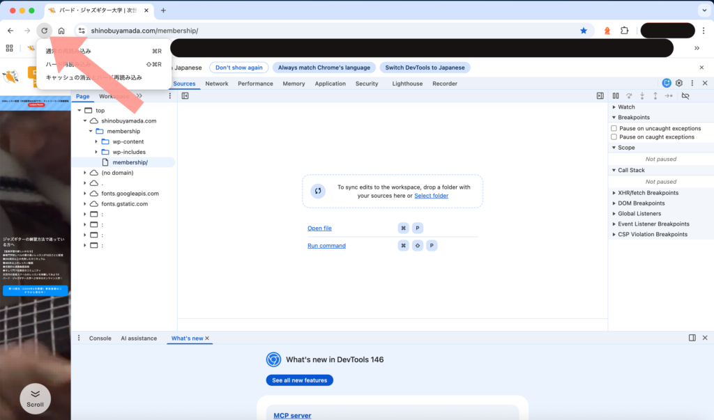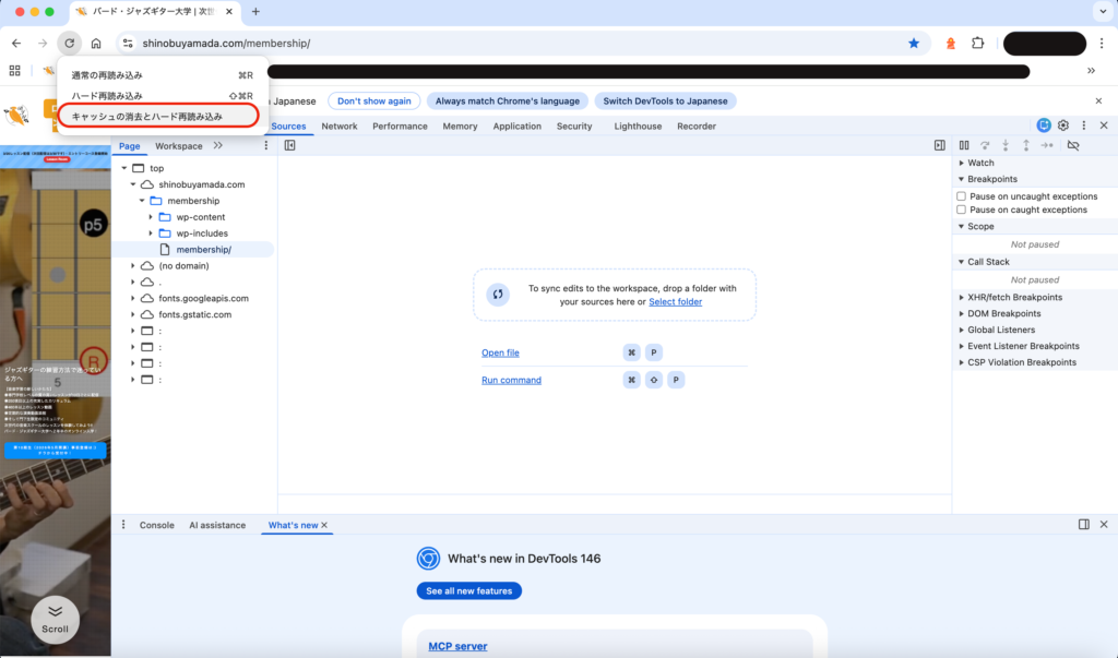 キャッシュの消去とハード再読み込み