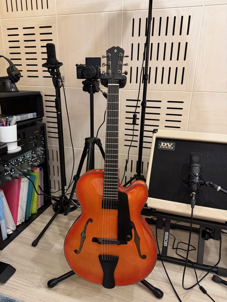 高校時代にミスタービッグ、ボンジョビ、エアロスミスetc..ロックスターに憧れてギターを手にしました。もちろん全然弾けませんが…そして社会人になり次第にギターに触らなくなり、そうこうしているうちに子供ができ、その息子がドラムを習うことになりました。その教室の先生がジャズをしていてカッコイイ!素敵!ズキューンと胸を打たれ「ジャズやりたい」再びギターを持ち、ジャズを始めることになりました。Ibanezのギターも買いました。